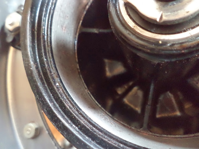 Hard to show here, but there is a rough spot with raised rust pits in one section of the hub. I worked that over with scotch-brite and a dremel with another steel wool wheel. That wheels work good, but don't seem too last long.